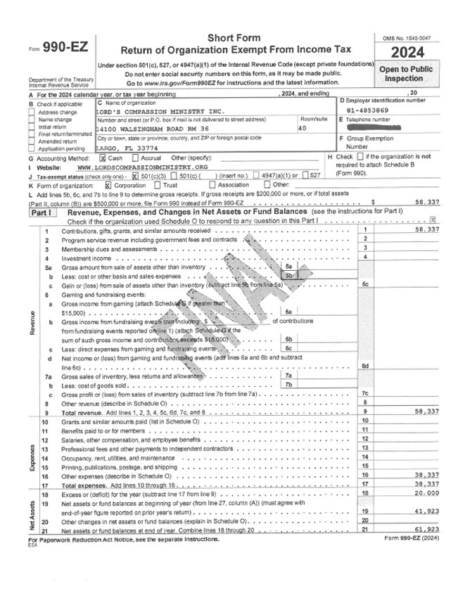 **LCM does not have a 990 form for 2017, 2019, 2020, and 2021 since we did not bring in over $50,000 in donations. We do have to submit a form to the IRS for those years. LCM applied to be a 501c3 through the 1023 EZ process. LCM board members did not think we would make more than $50,000 in the first three years, however in our 2nd year (2018), we did! We made over $60k. Praise Jesus! Therefore, we have a 990 form for 2018 and 2022. You can find non profit 990 information on Guidestar!